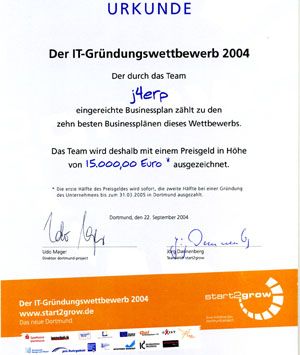das von mir geführte team j4erp hat beim IT Wettbewerb 2004 bei start2grow, dortmund, den 4.platz erzielt.
