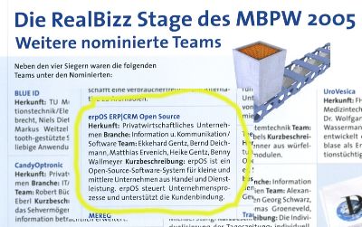 das von mir geführte team erpos wurde nominiert beim münchner businessplan wettbewerb 2005 in der real bizz stage.