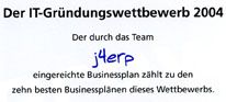 das von mir geführte team "j4erp" hat beim start2grow - it - wettbewerb 2004 mit einem erp - open source - businessplan den 4. prämierten platz erreicht.